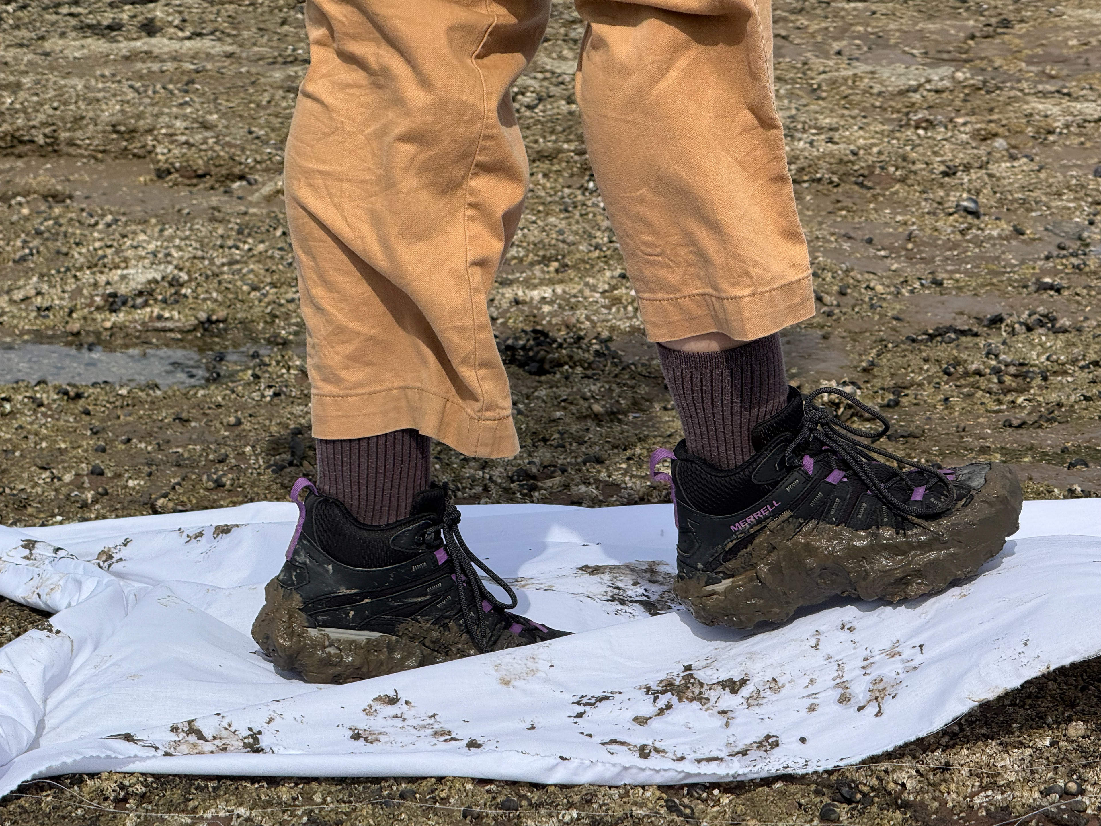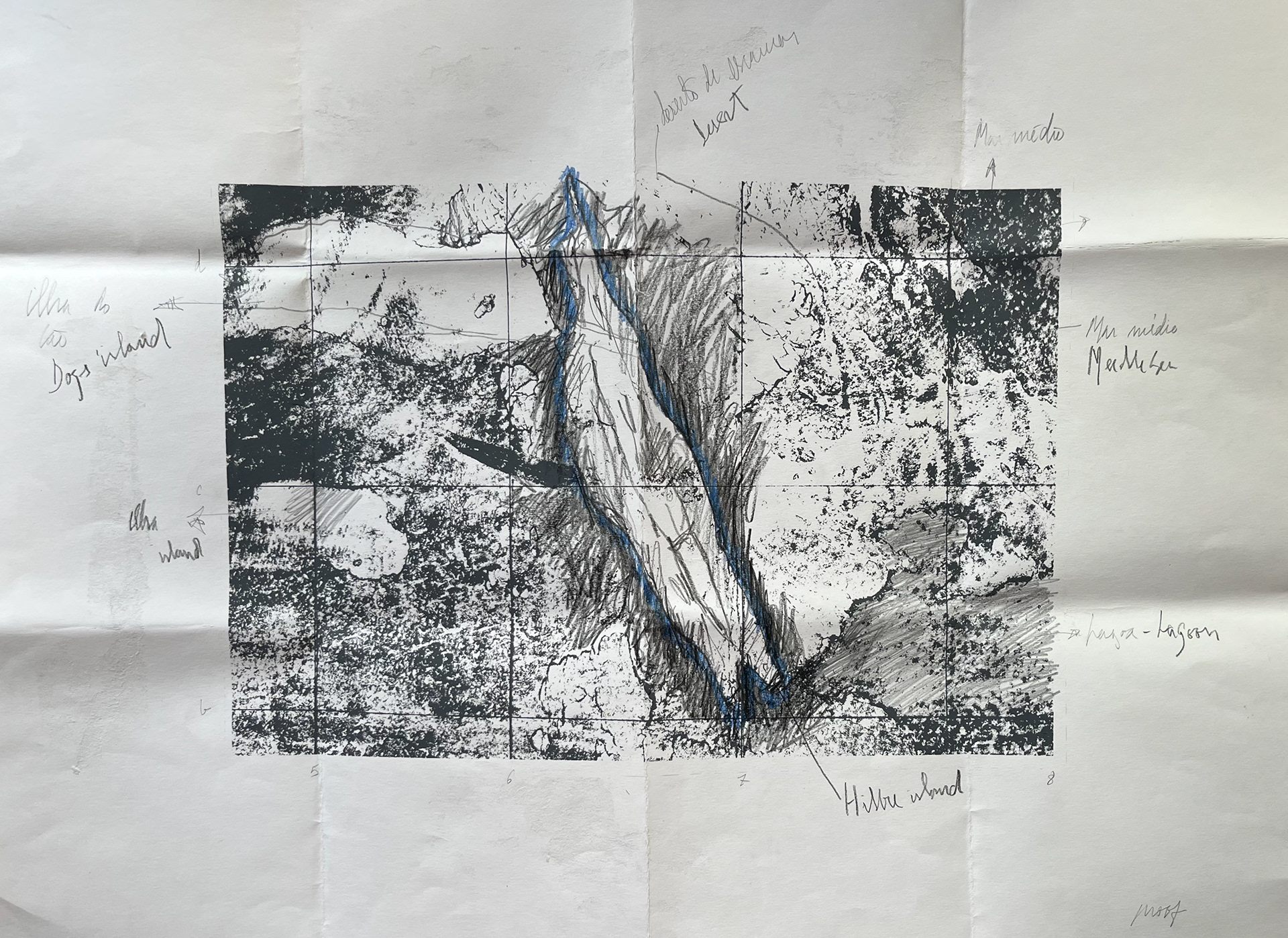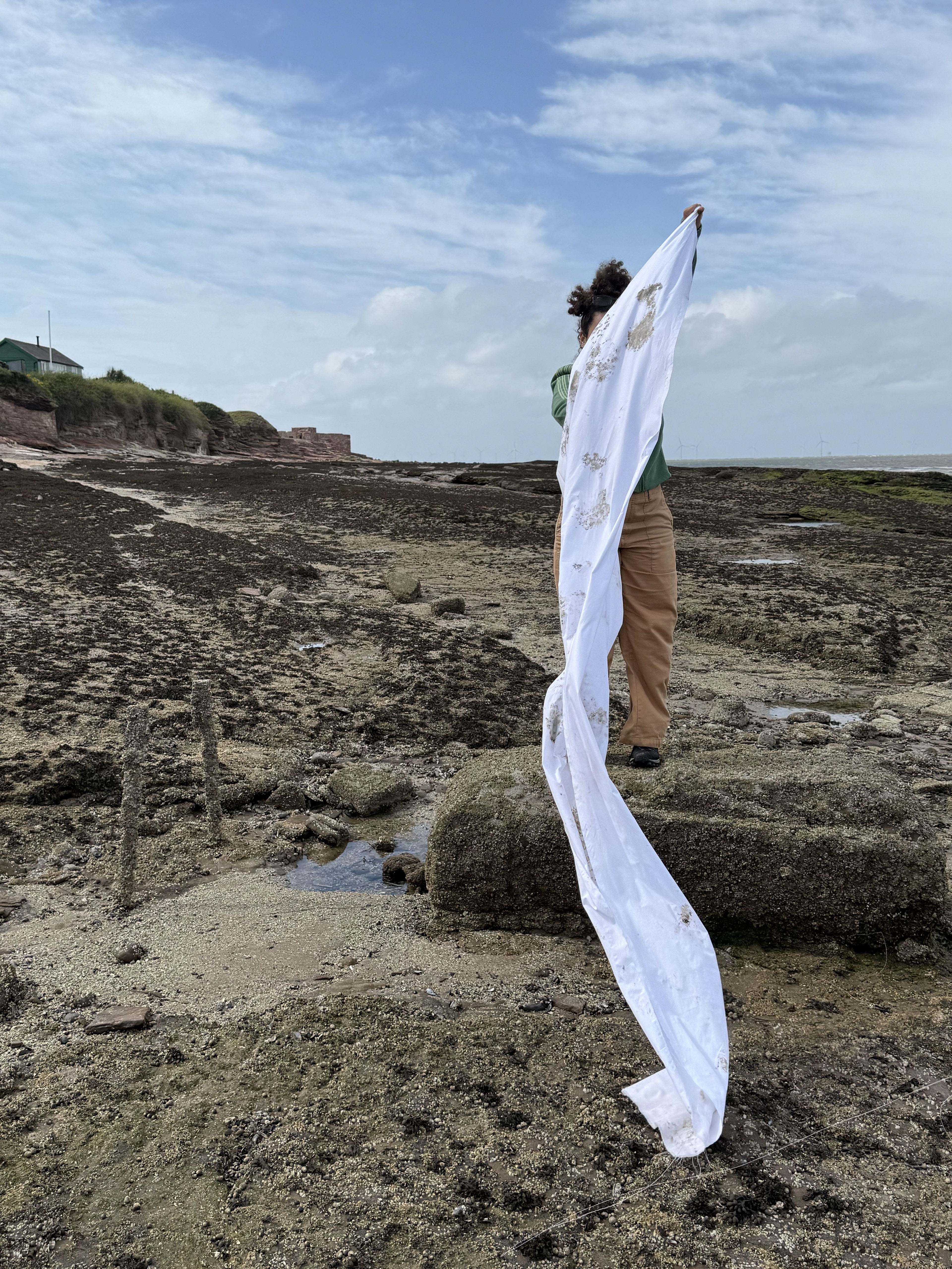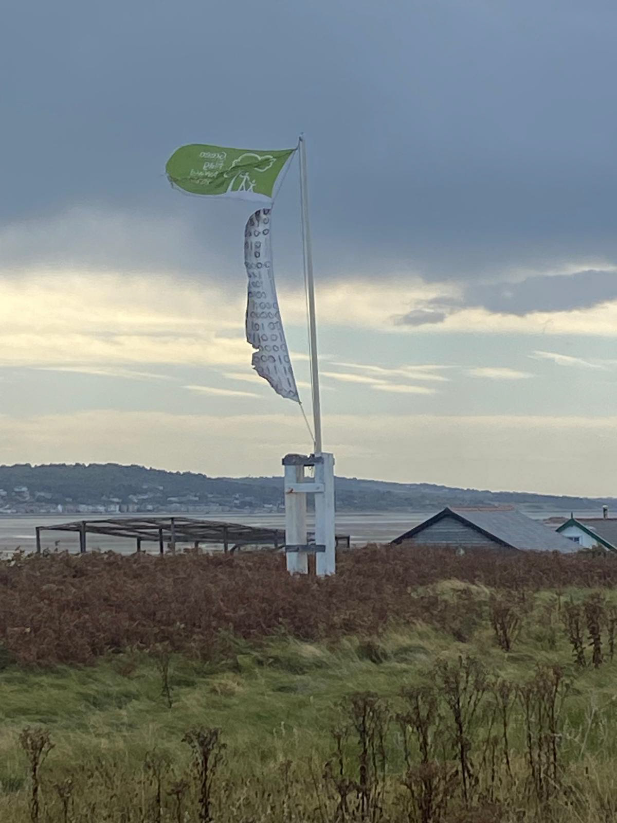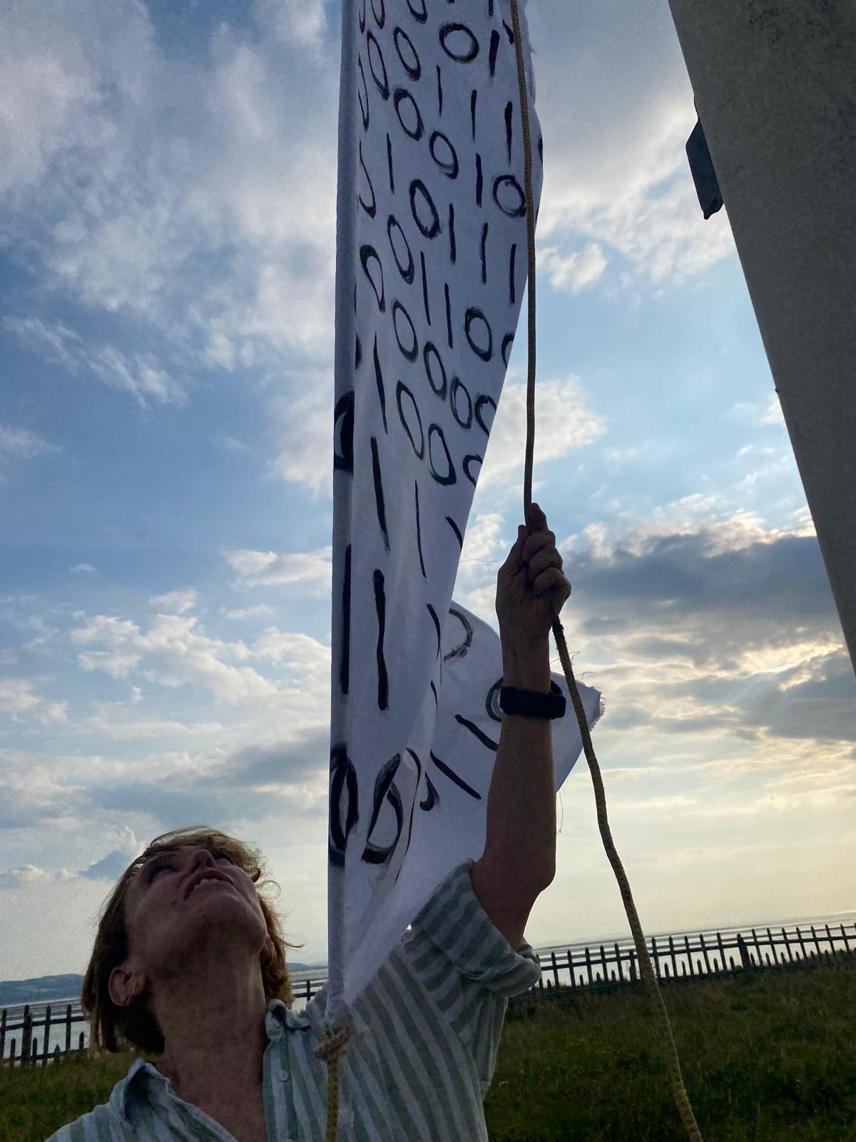 The binary code drawn on this flag mediates a dialogue between three entities: a computer, a person and Hilbre Island.