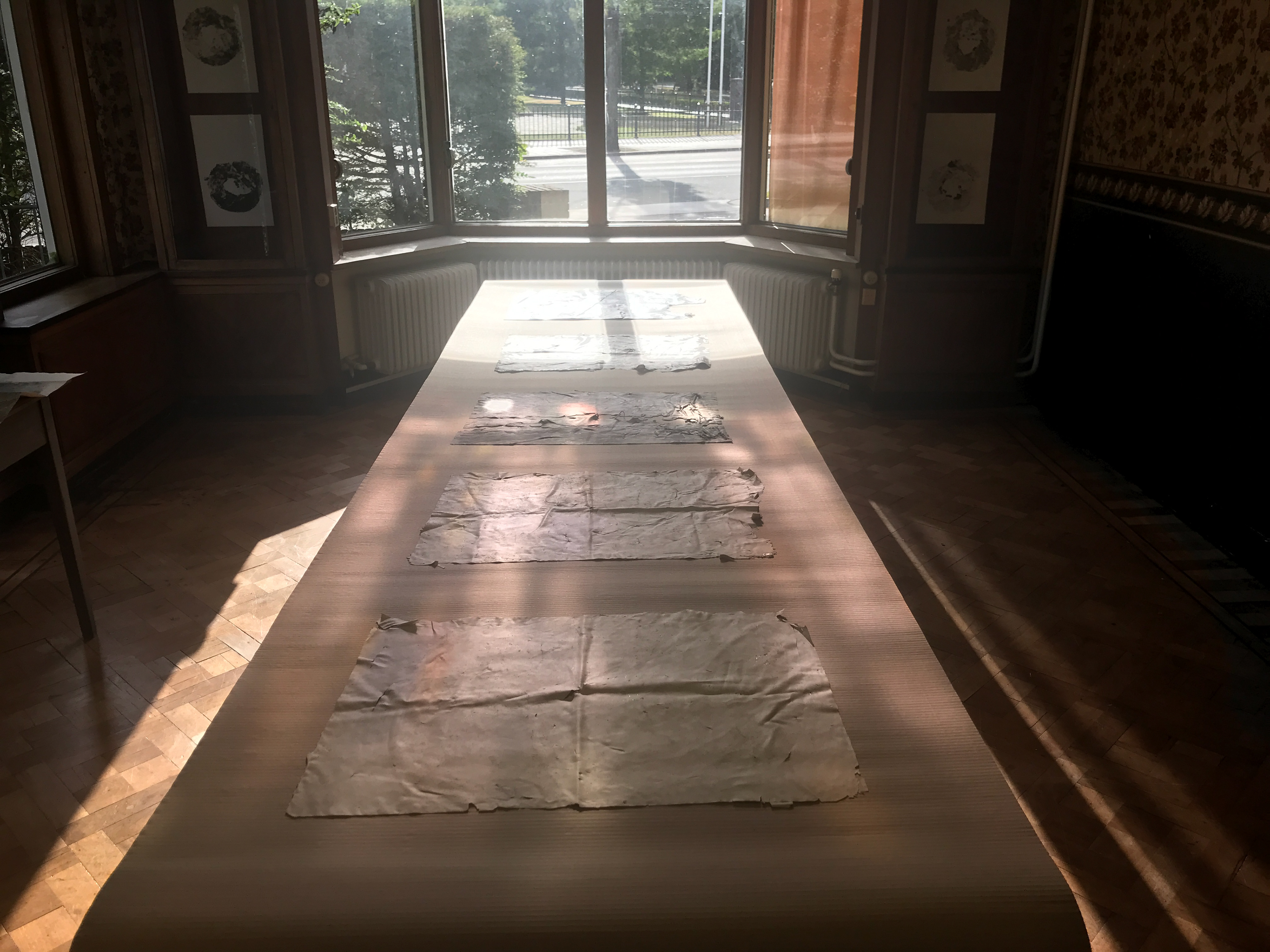 The concept of cartographic systems is present, although it exists outside the maps. The presentation of these records implies the existence of 24 meridians, time zones, five parallels, and other cartographic references. However, the map / cartographic system relationship happens only in the mind of the observer.The exhibition at Albert Van Abbehuis, in Eindhoven, the Netherlands, between October and November 2022. It shows all the work done on the maps made until then and is organized into four rooms where rooms 1 and 2 coincide with maps 1 and 2. Room 3 presents a view of the other maps made until the present moment. Room 4 is an investigation inside map 2.