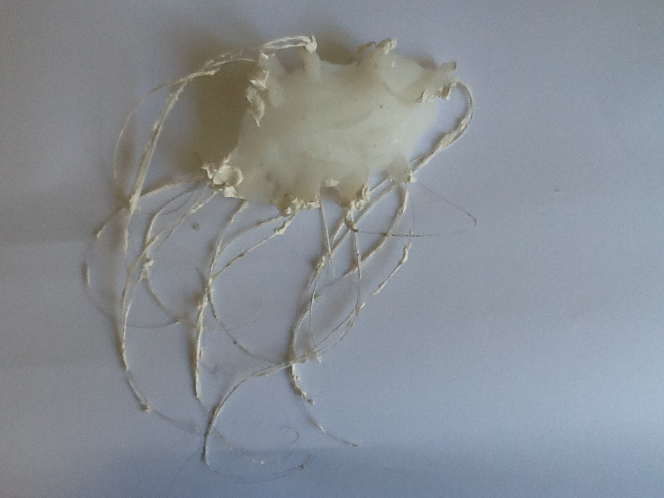 New objects. Creatures made with silicone and nylon thread. 10X4X3 cm, aprox., 2016